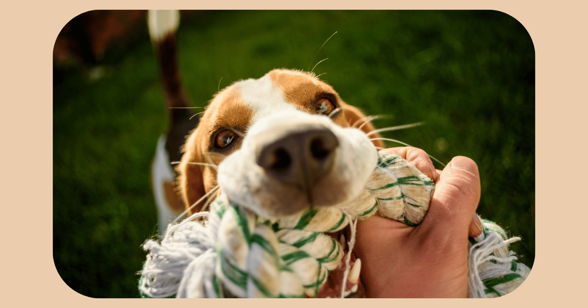 Now, just because tug doesn’t cause aggression doesn’t mean it has to be a free-for-all. The game does involve grabbing and biting, and you don’t want your dog chomping down on your fingers instead of the toy!